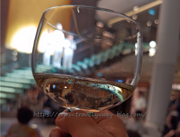 出港パーティーはプールサイドで実施をされていましたが、そちらを横目に11デッキで配っていたワインをもって、岸で行われている出港のお見送りを見ます。