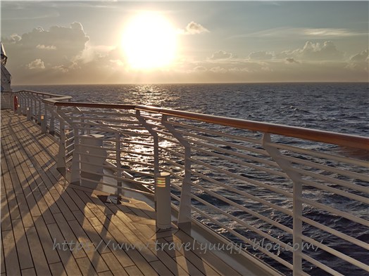 2日目は終日航海なので早起きする必要はないのですが、朝一で開催されるデッキを歩くウォーキングのイベントには参加したい!ということで、6時に起きました。