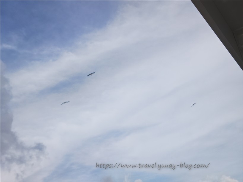 食事を終えて、お部屋のバルコニーに出てみます。陸が近いからなのか、カモメがたくさん飛んでました。