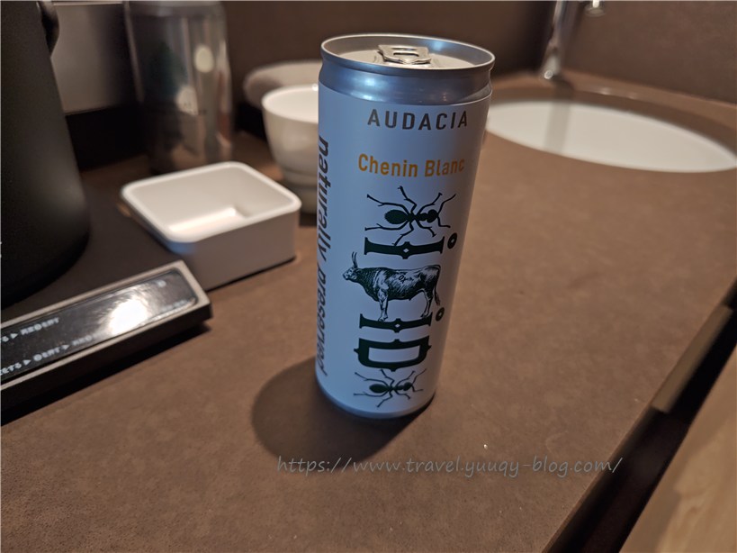 カモメを眺めたあとは、お部屋の冷蔵庫に入れてもらってる缶に入ったワインを飲みながら、ゆっくりします(ワインは補充なしの1回かぎりみたいです。赤と白とそれぞれ1本ずつありました)。
